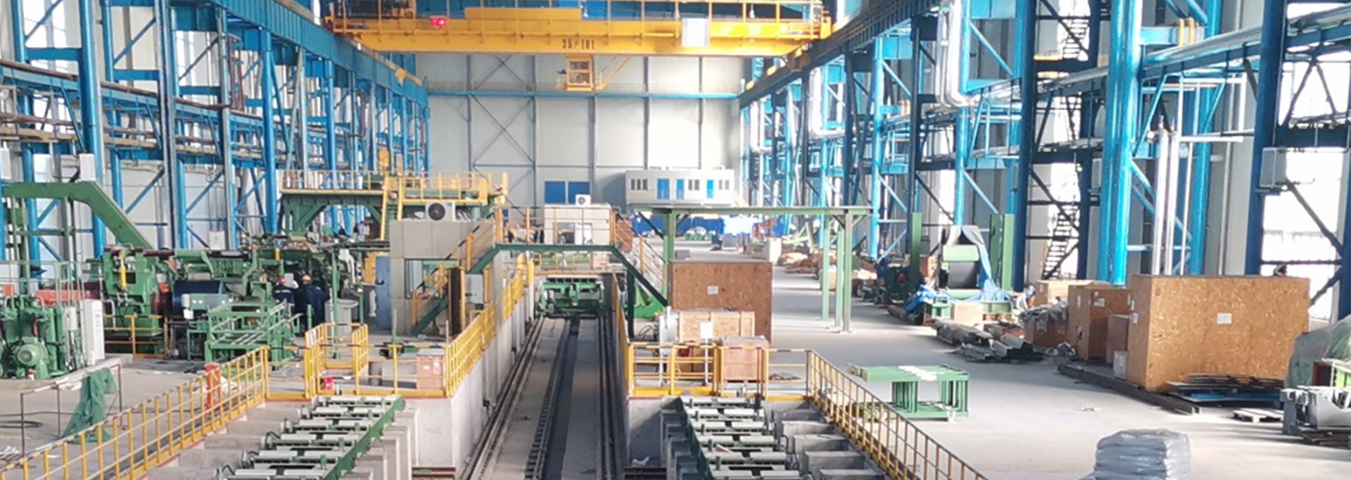 可將精整后段工序全線貫通,實現(xiàn)智能化運行;不同產線之間自動運輸鋼卷,可根據(jù)現(xiàn)場實際情況非標定制;解決不同產線之間采用行車頻繁吊卷的繁瑣工作;產線之間的運輸形式可采用步進梁、托盤小車、滑觸線小車等多種形式。