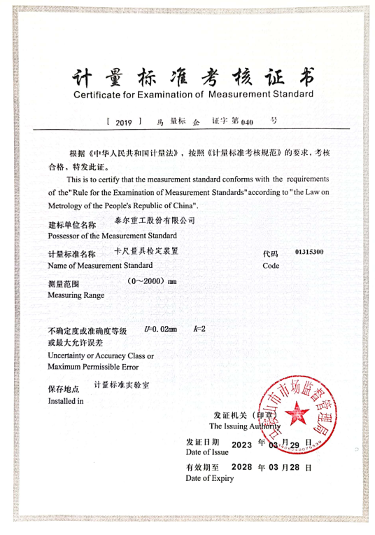 計(jì)量標(biāo)準(zhǔn)考核證書
